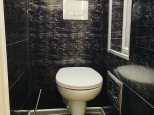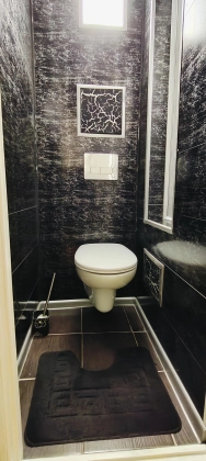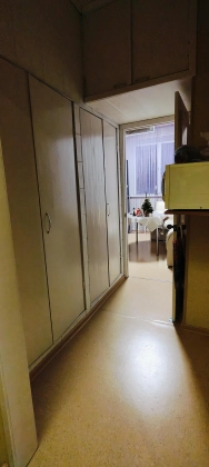 Стены оклеены обоями , Потолок побелен. На полу линолеум. Ванная отделка кафелем пол и стены , коммуникации в хорошем состоянии . Туалет отделка панелями , установлена инсталляция .