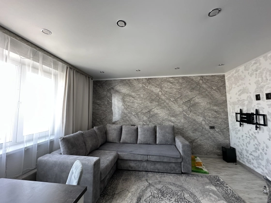 Дом расположен в развитом районе города: в шаговой доступности школа, детский сад, магазины.