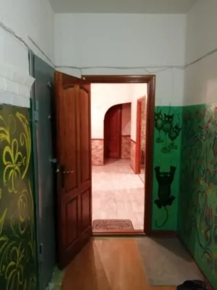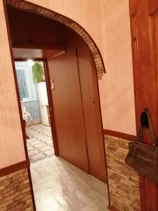 В квартире выполнен косметический ремонт. Во всех комнатах уложены ковролин, линолеум, поклеены обои, потолки оклеены потолочной плиткой. В мокрых зонах новая сантехника, стены отделаны панелями.