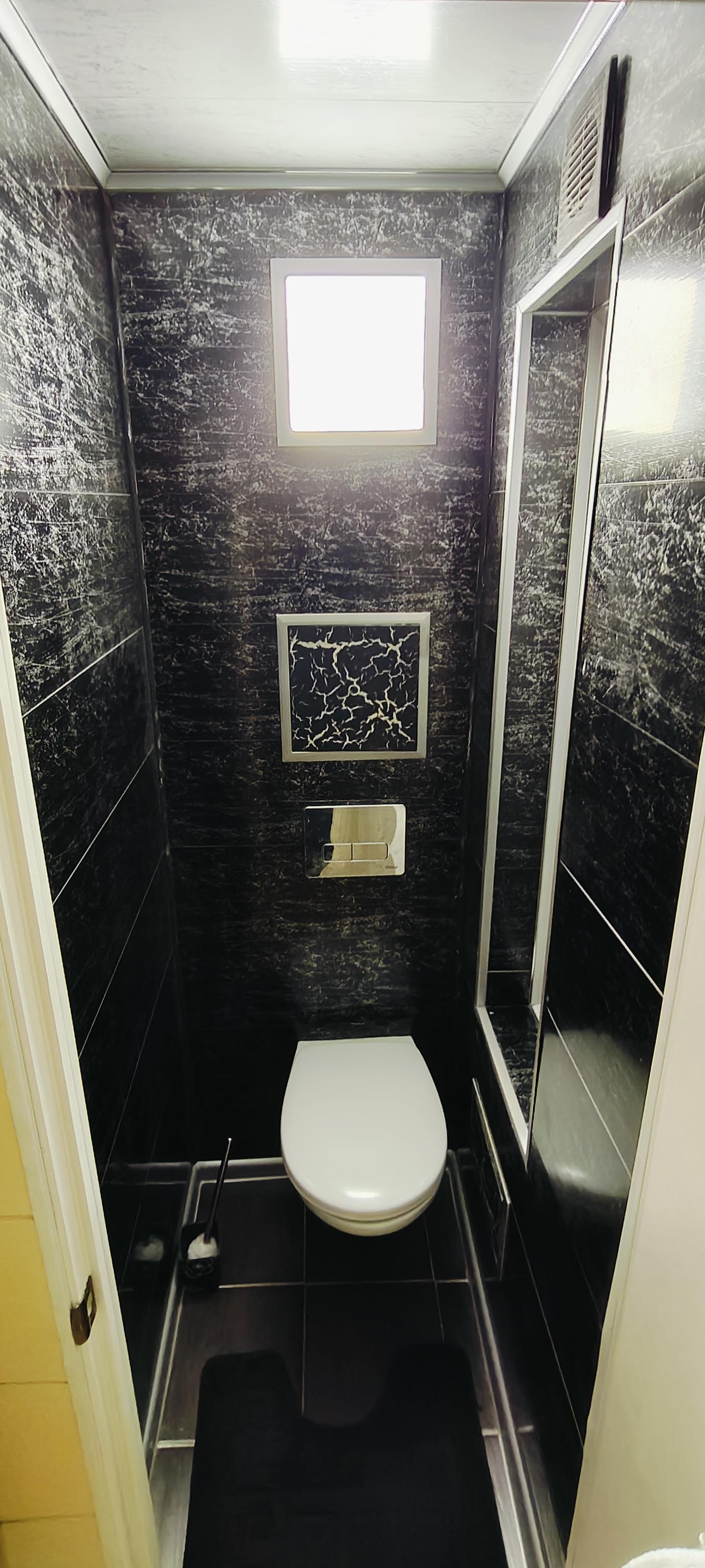Стены оклеены обоями , Потолок побелен. На полу линолеум. Ванная отделка кафелем пол и стены , коммуникации в хорошем состоянии . Туалет отделка панелями , установлена инсталляция .