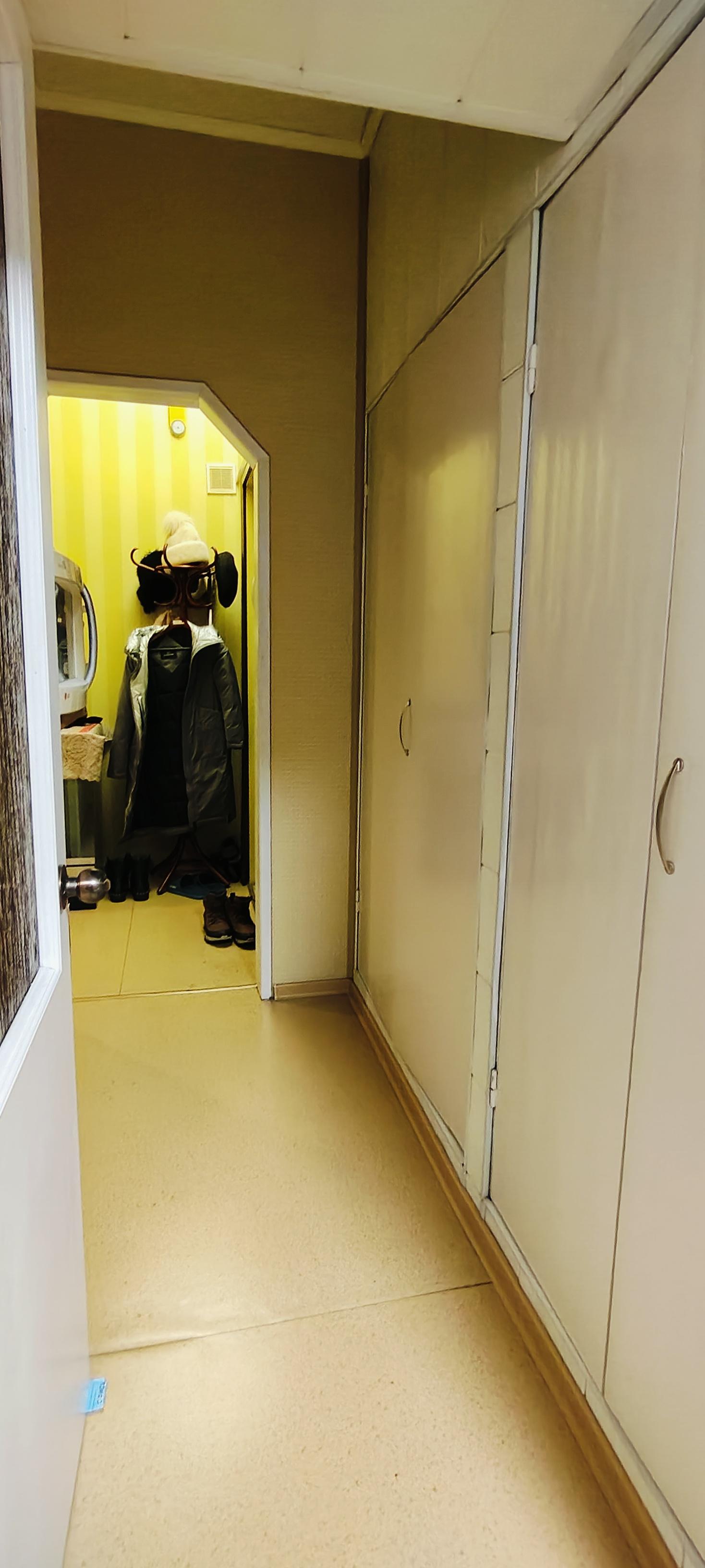 Современная входная дверь . Окна ПВХ . Имеется балкон и лоджия остекленные ..